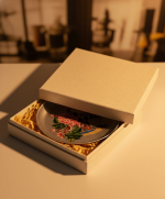 • نقاشى رنگ روغن (تركيب سبك گل و مرغ با معمارى ) روى ظروف روحی ورق طلا شده