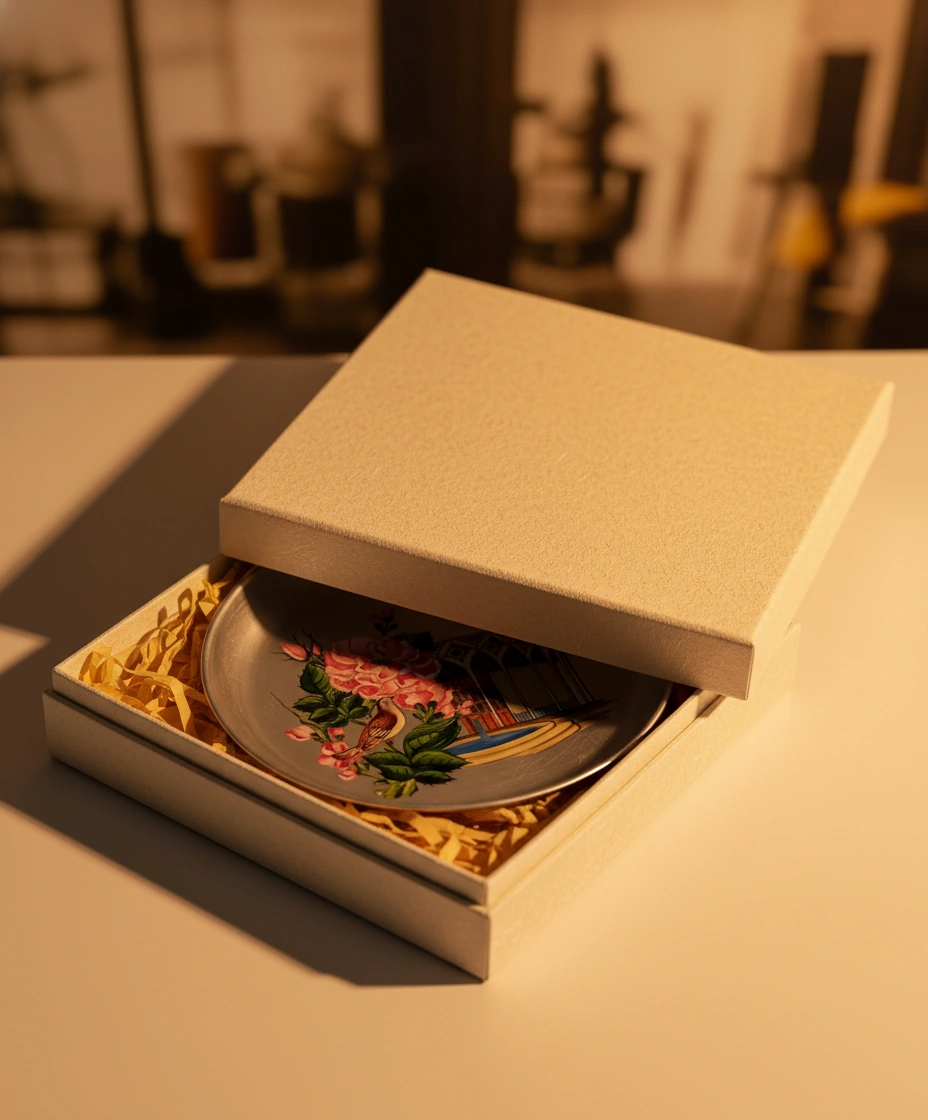 بشقاب دیوارکوب پتینه ورق طلا و نگارگری طرح سر در باغ ملی 6.500.000 تومان